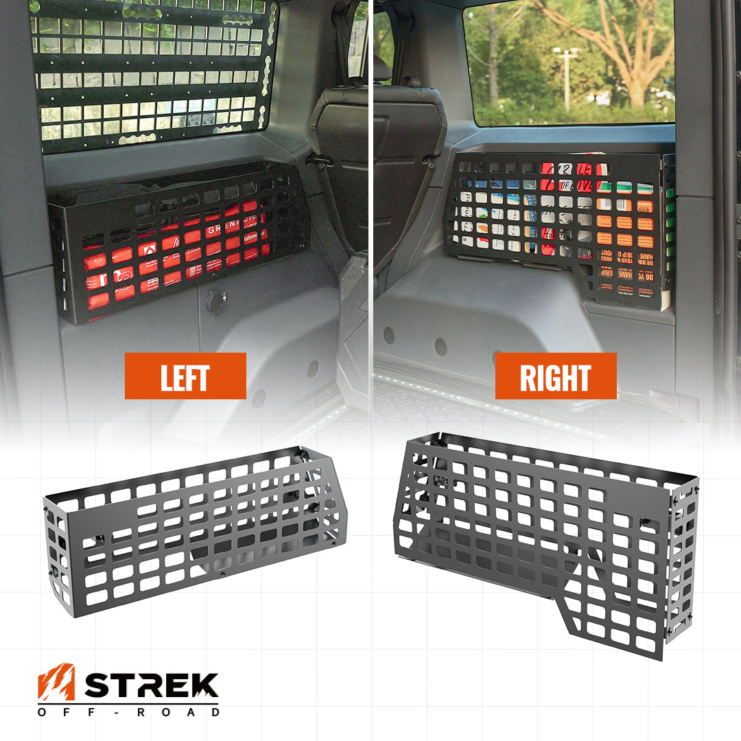 Transform your Ineos Grenadier's trunk into an organized and efficient storage space with our Side Trunk Organizer Basket featuring a versatile Molle Panel. Designed to fit 2020-2026 models, this system utilizes the often-unused side areas of your trunk, providing a secure and customizable solution for carrying gear, tools, and other essentials.