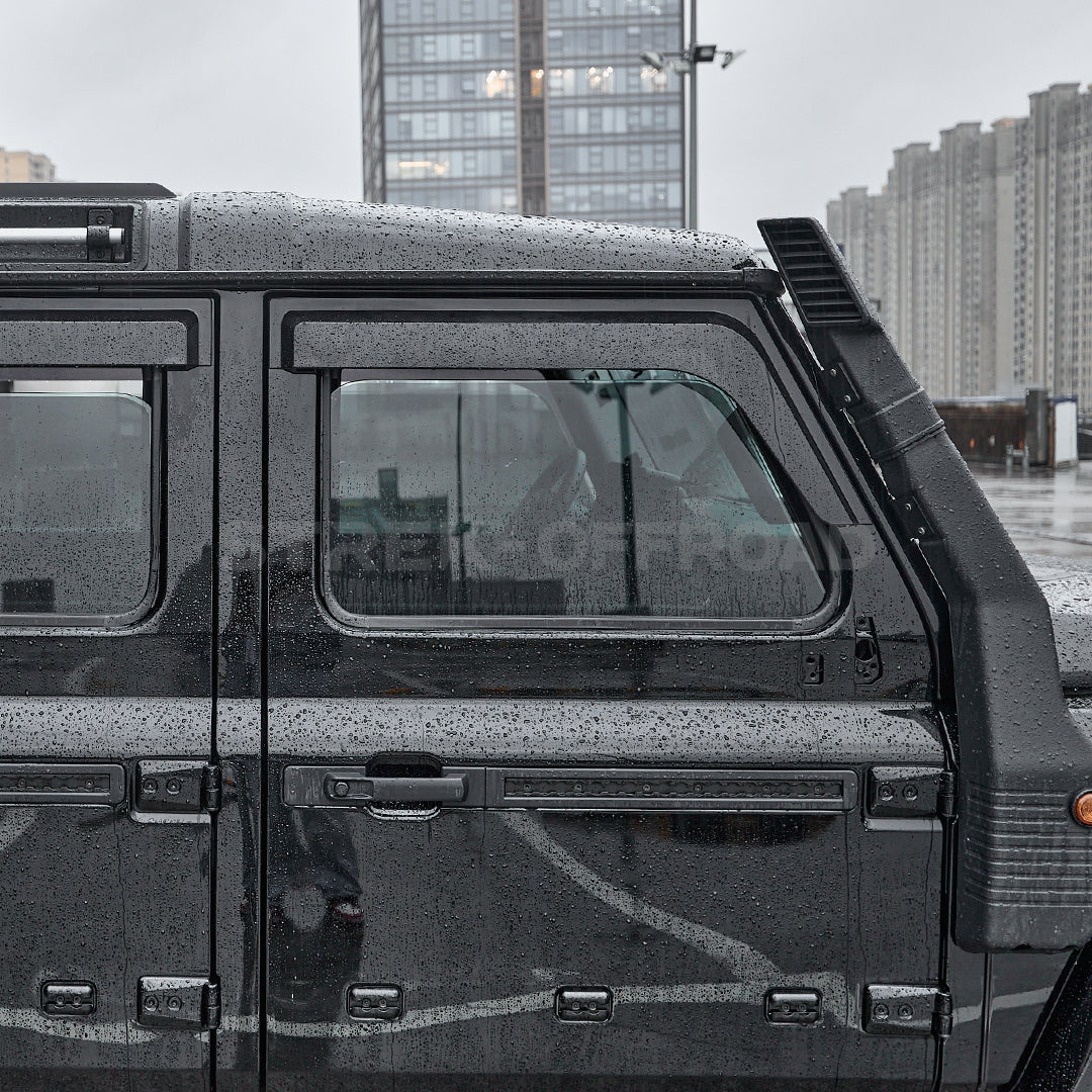 Enhance your driving experience with these custom-fit Side Window Deflectors for your Ineos Grenadier (2022+). These deflectors allow you to enjoy fresh air even in rainy or snowy conditions, while also reducing wind noise and keeping the elements out. Made from durable, high-quality acrylic, these visors are a practical and stylish addition to your Grenadier.